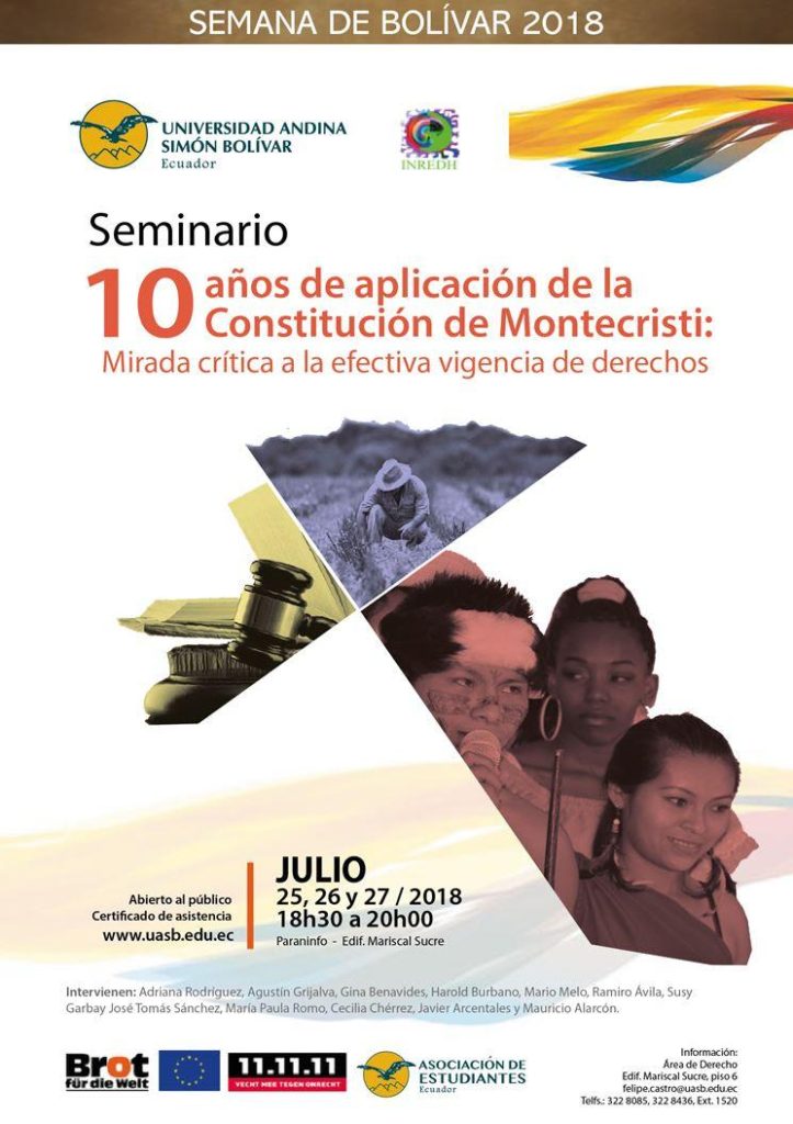 El Área de Derecho de la Universidad Andina Simón Bolívar y la Fundación Regional de Asesoría en Derechos Humanos (Inredh) invitan al Seminario “10 años de aplicación de la Constitución de Montecristi: Mirada crítica a la efectiva vigencia de derechos”.