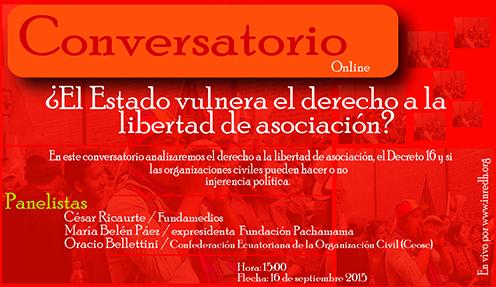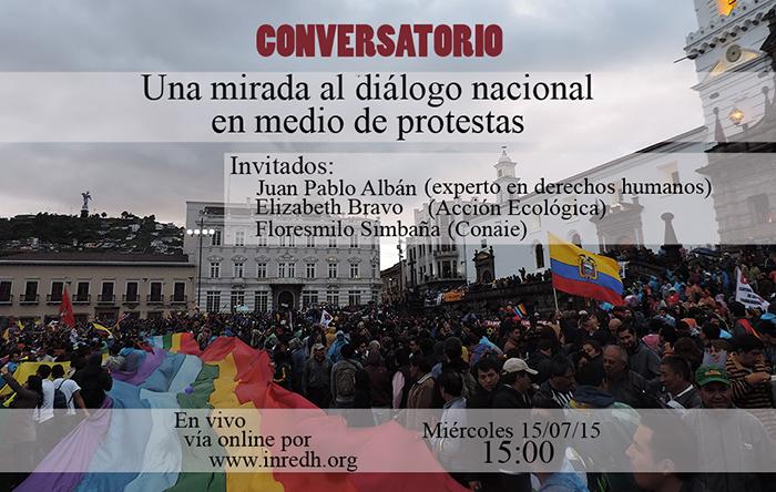 Comunicación INREDH 14/07/2015 CONVERSATORIO “Una mirada al diálogo nacional en medio de protestas” Tras una serie de plantones, marchas y anuncios de un paro nacional contra las políticas aplicadas por el actual gobierno, el presidente Rafael Correa decidió llamar al “Diálogo nacional por la equidad y la justicia social” a los ciudadanos, sectores […]
