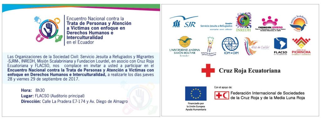 Equipo de Comunicación 22/09/2017 Encuentro Nacional Contra la Trata de Personas y Atención a Víctimas con Enfoque en Derechos Humanos e Interculturalidad Las Organizaciones de la Sociedad Civil: Servicio Jesuita a Refugiados y Migrantes – SJRM, Fundación Regional de Asesoría en Derechos Humanos – INREDH, Misión Scalabriniana, Fundación Lourdel, en asocio […]