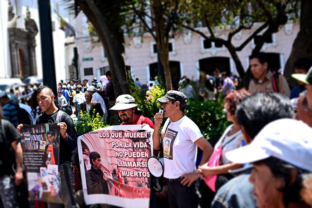 Comunicación Inredh 22/09/2017 Familiares de desaparecidos rindieron homenaje a Walter Garzón, fundador de Asfadec Un plantón se realizó en solidaridad y memoria al cumplirse un año del fallecimiento de Walter Garzón, padre de Carolina Garzón, desaparecida desde abril del 2012, el Ecuador. El evento se desarrolló en la Plaza Grande, desde las 10:00, el pasado miércoles […]