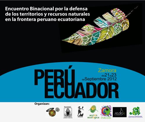 Comunicacion INREDH 20/09/2012 Seminario Binacional por la defensa de los territorios y recursos naturales en la frontera Perú-Ecuador “Encuentro Binacional por la defensa de los territorios y recursos naturales en la frontera Perú-Ecuador” Zamora, 21 al 23 de septiembre de 2012