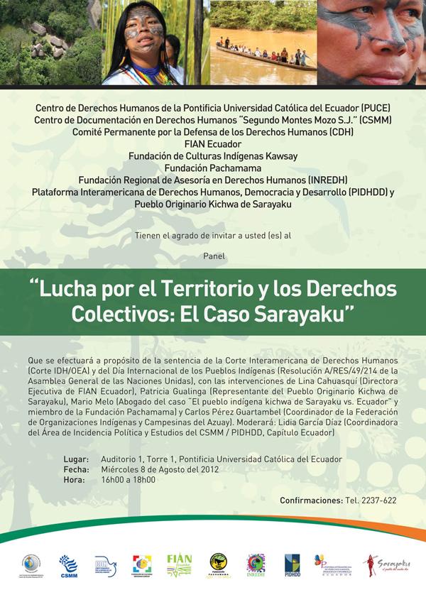 Comunicación INREDH 03/08/2012 Lucha por el Territorio y los Derechos Colectivos: El Caso Sarayaku