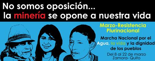 Comunicación INREDH 08/03/2012 Con ceremonia ancestral junto al río Chuchumbletza inicio Marcha Plurinacional desde El Pangui Pangui- Zamora, 8 Marzo de 2012. Representantes de los pueblos y nacionalidades indígenas, sectores sociales, populares y ecológicos, acudieron junto al rio Chuchumbletza en la parroquia Guismi para mediante símbolos ancestrales dar inicio de la Marcha Plurinacional del […]