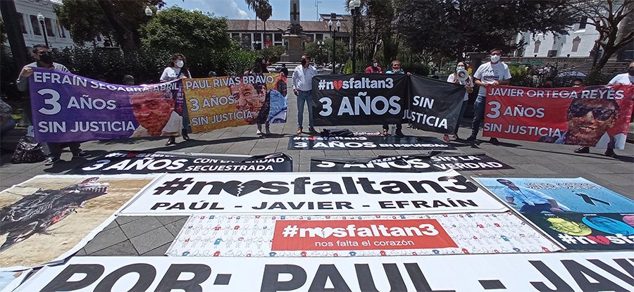 Familiares y compañeros de Javier Ortega, Paúl Rivas y Efraín Segarra, los trabajadores de la comunicación secuestrados y posteriormente asesinados en la parroquia de Mataje, provincia de Esmeraldas, el pasado 26 de marzo de 2018, realizaron un plantón frente a la Presidencia para exigir verdad y justicia. Javier Ortega, Paúl Rivas y Efraín Segarra viajaron […]