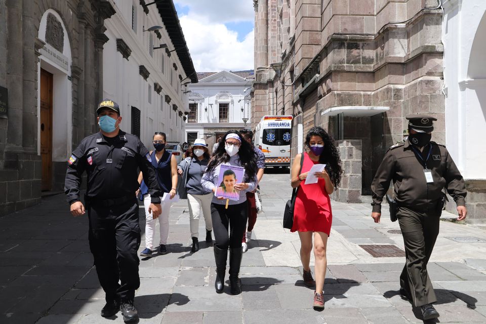En la mañana de hoy, 18 de enero de 2021, Elizabeth Rodríguez con el apoyo de la Fundación Regional de Asesoría en Derechos Humanos (Inredh), entregó al ministro de gobierno, Patricio Pazmiño, un segundo oficio para el requerimiento de acciones diligentes por el cumplimiento de la sentencia en el caso de su hija Juliana Campoverde.