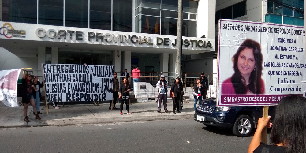 Este martes 7 de julio de 2020 se cumplieron ocho años de la desaparición de la joven Juliana Campoverde. En el marco de este aniversario, su madre Elizabeth Rodríguez realizó un plantón bioseguro “Ocho años sin Juliana Campoverde” que se desarrolló en los exteriores de la Fiscalía General del Estado, en la av. Patria y […]