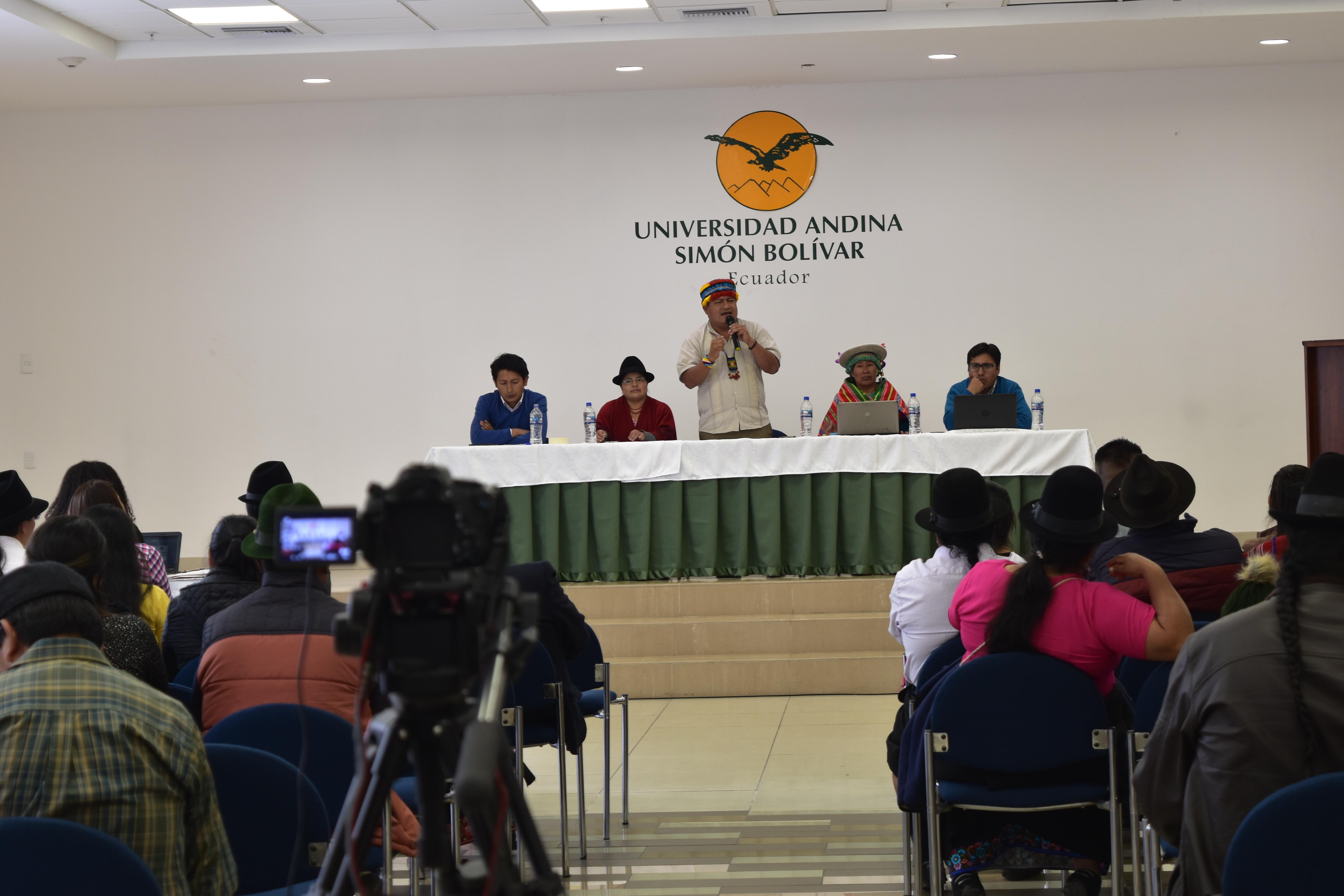 El Encuentro Internacional de Justicia Indígena “Derechos Humanos: 70 años de utopías”, se realizó en el marco de los 70 años de la Declaración Universal de Derechos Humanos de Naciones Unidas del 11 y 12 de diciembre de 2018, fue organizado por el Área de Derecho de la Universidad Andina Simón Bolívar, conjuntamente con la Fundación Regional de Asesoría en Derechos Humanos (Inredh) y la Confederación de Nacionalidades Indígenas del Ecuador (Conaie), en la ciudad de Quito, con cerca de 90 autoridades indígenas de Cotopaxi, Loja, Imbabura, Chimborazo, Morona Santiago, Zamora Chinchipe, Pastaza, Napo, Sucumbíos, Esmeraldas, Guayas, Pichincha, Cañar, entre otras.