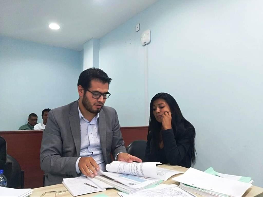 El fiscal Jefferson Ibarra y Angie Pinta, pareja de Francisco, en la audiencia de juzgamiento en Esmeraldas.