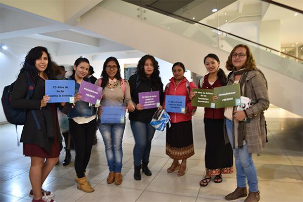 Evelyn Calvopiña, de Inredh; Beatriz Villarreal; Freya Rondelez, 11.11.11 Latinoamérica; Patricia Ponce, Coccinelle; y Raquel Yrigoyen, experta en justicia indígena