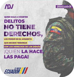 Los discursos y productos audiovisuales emitidos en las redes sociales de la Presidencia de la República por parte del presidente Daniel Noboa así también como las publicaciones del partido político oficialista Acción Democrática Nacional (ADN) que respaldó la candidatura de Noboa, presentan algunas ideas que incentivan a la sociedad ecuatoriana a repudiar a las personas detenidas durante el ejercicio de poder de las FAE y la PN y más aun de las personas en los centros de privación de libertad.
