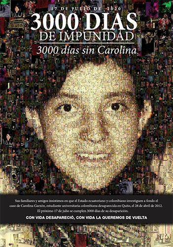 Carta pública: ¡Tres mil días sin Carolina Garzón y la impunidad del gobierno de Ecuador cada día peor!