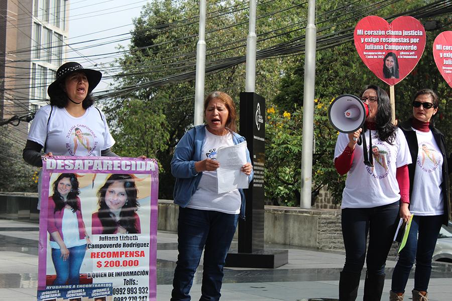 Este martes 7 de julio de 2020 se cumplieron ocho años de la desaparición de la joven Juliana Campoverde. En el marco de este aniversario, su madre Elizabeth Rodríguez realizó un plantón bioseguro “Ocho años sin Juliana Campoverde” que se desarrolló en los exteriores de la Fiscalía General del Estado, en la av. Patria y […]