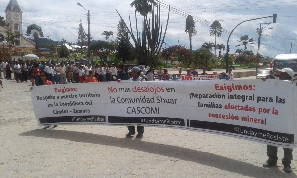 Comunicación Confeniae 11/07/2017 Comuneros de Tundayme exigen restitución de tierras y celeridad en causas interpuestas contra empresa minera ECSA Esta mañana más de un centenar de comuneros de la parroquia Tundayme, Cordillera del Cóndor, Zamora Chinchipe acudieron al cantón El Pangui junto a dirigentes provinciales y nacionales para exigir agilidad en el trámite de varias causas […]