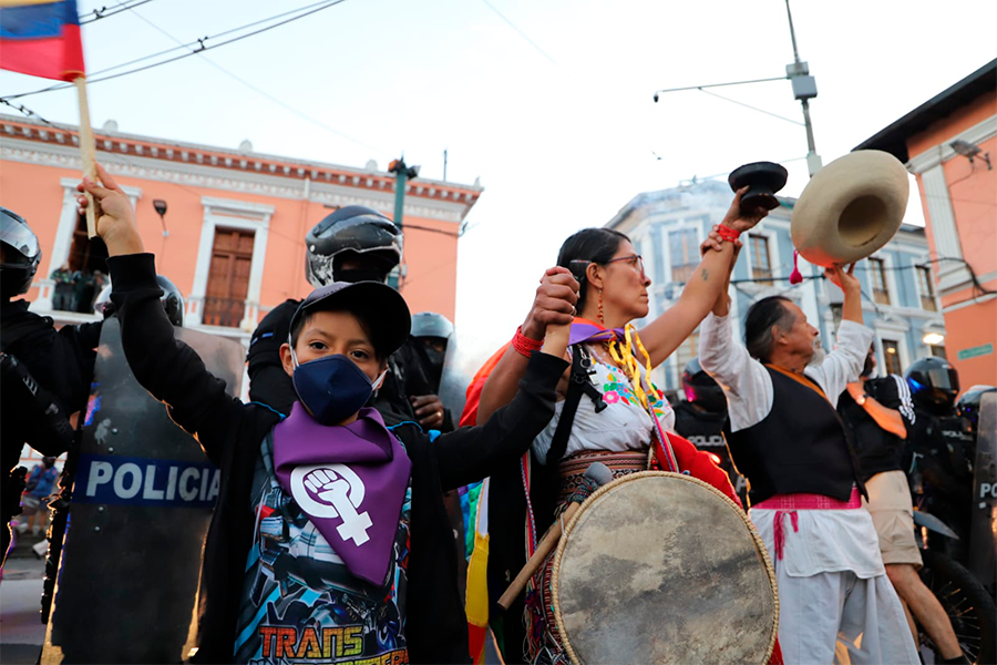 La Federación de Estudiantes Universitarios del Ecuador (FEUE) convocó a la protesta desde horas del mediodía. Un grupo reducido se concentró inicialmente en los exteriores de la Universidad Central, en el centro norte de la ciudad. Hacia las 16:00, más colectivos sociales se sumaron a la movilización desde la Caja del Seguro, en el parque […]